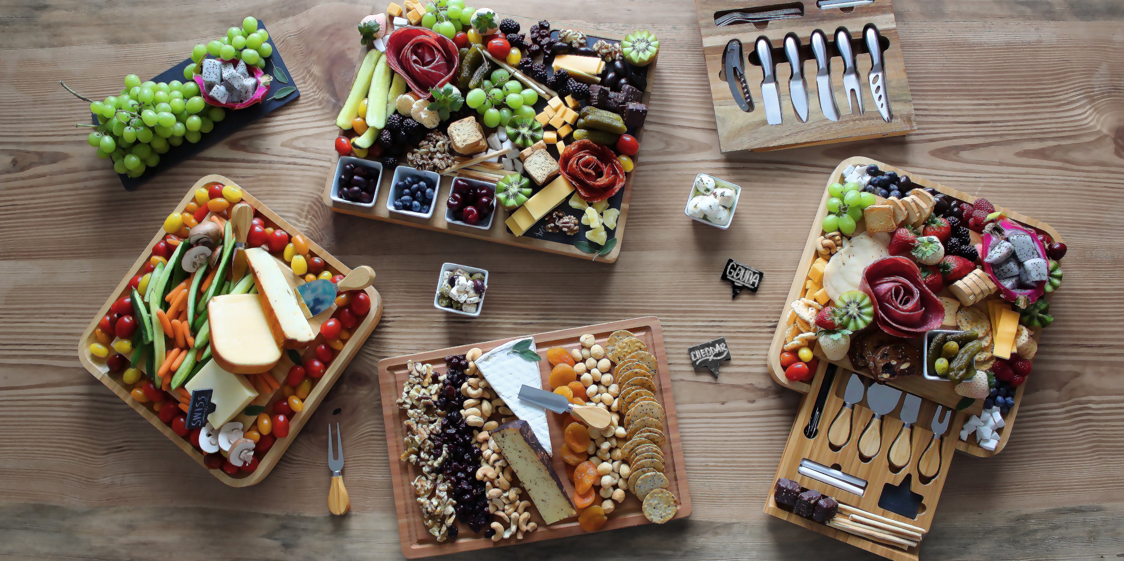 Charcuterie Board and Tools with Side Drawers and Bamboo Serving Plate - 16"(31") x 13"